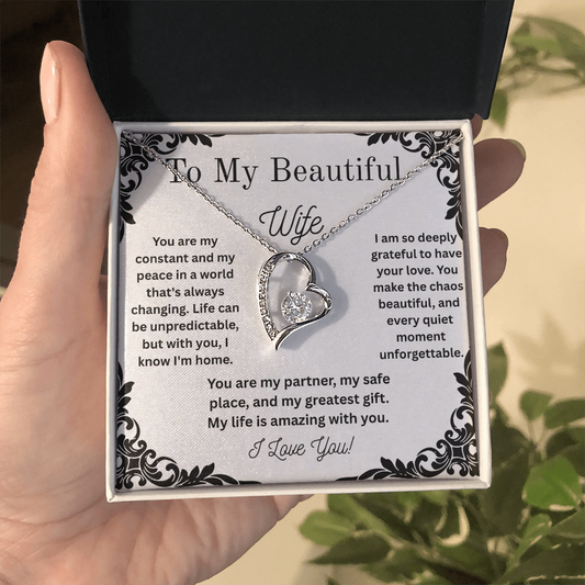 To My Beautiful Wife – Heart Pendant Necklace with Message Card | Anniversary, Birthday, or Just Because Gift